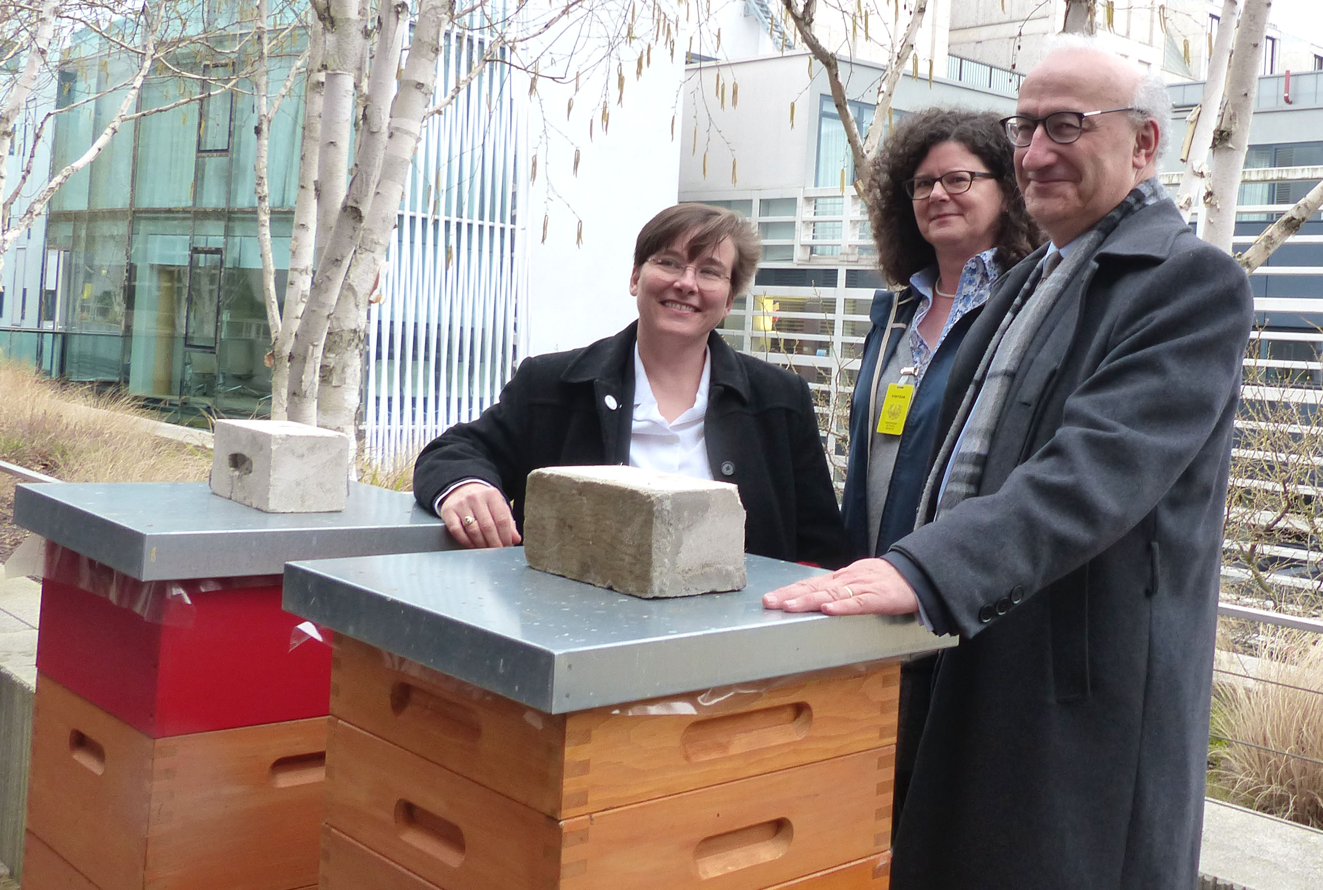 Bald gibt es französischen Honig direkt aus der Mitte Berlins: Zwei Bienenvölker wurden im Garten der französischen Botschaft in Mitte aufgestellt. Nach langer Abstimmungs- und Klärungsphase mit den Mitarbeitern der Botschaft wurden die beiden Völker feierlich begrüßt: Die Mitarbeiter sangen die französische Nationalhymne als die beiden Bienenkästen durch die Gänge zum aufwändig gestalteten Hof getragen wurden. Der französische Botschafter, Philippe Etienne, freut sich schon auf den ersten Honig aus der nun noch "grüneren" Botschaft, die mit zarten Birken und viel Lavendel schon jetzt eine grüne Oase bietet.